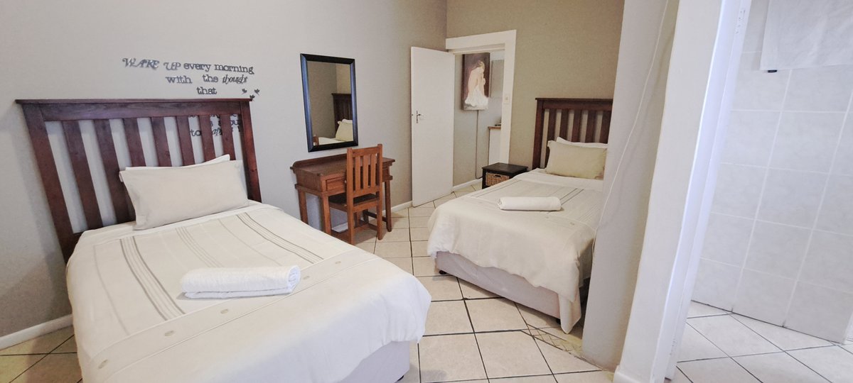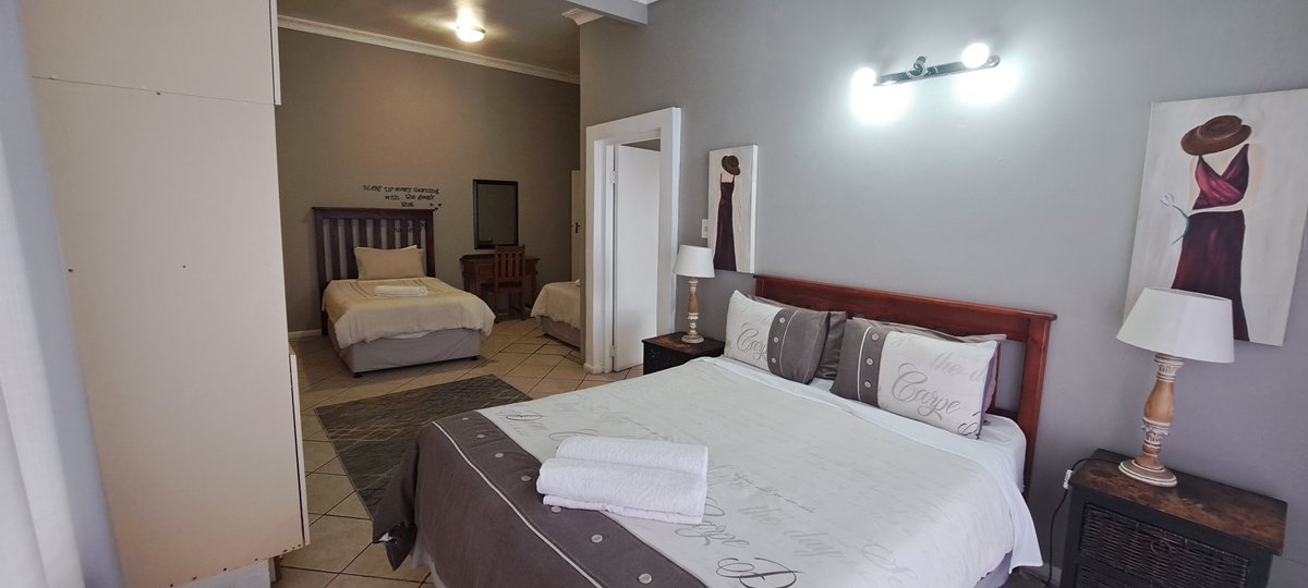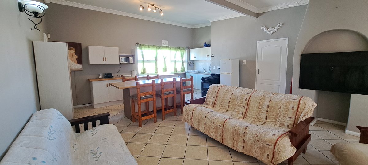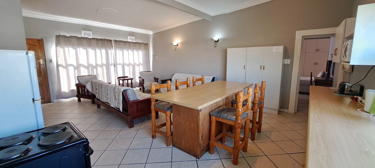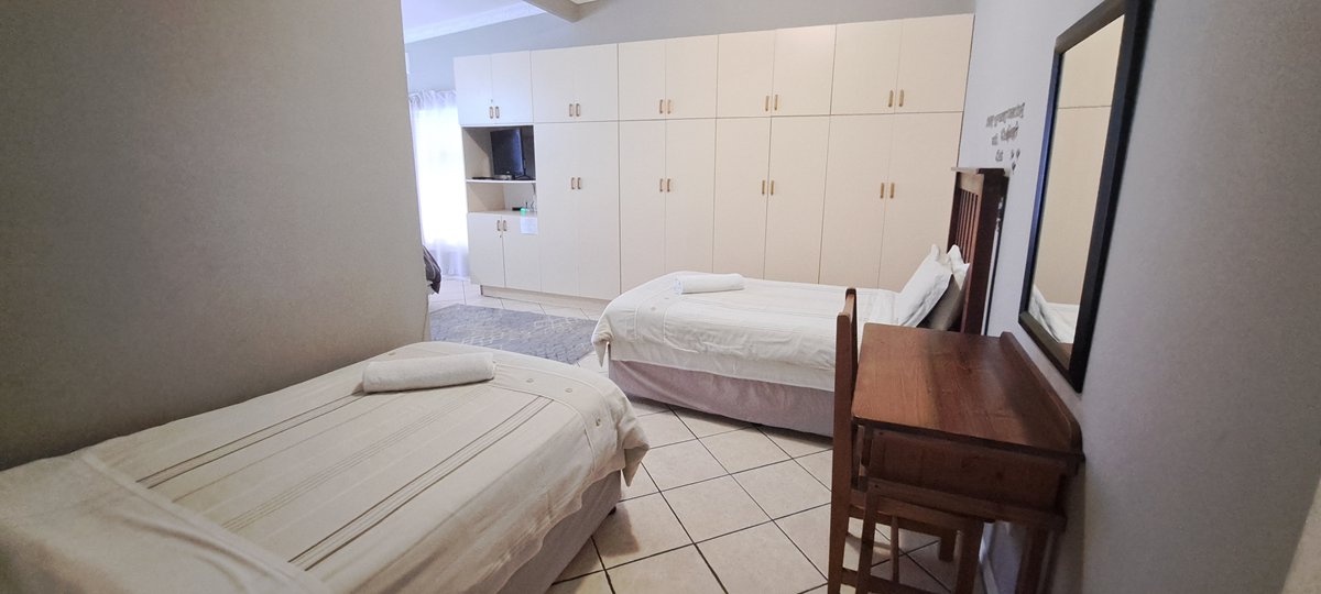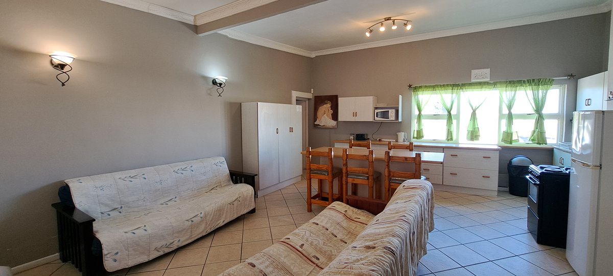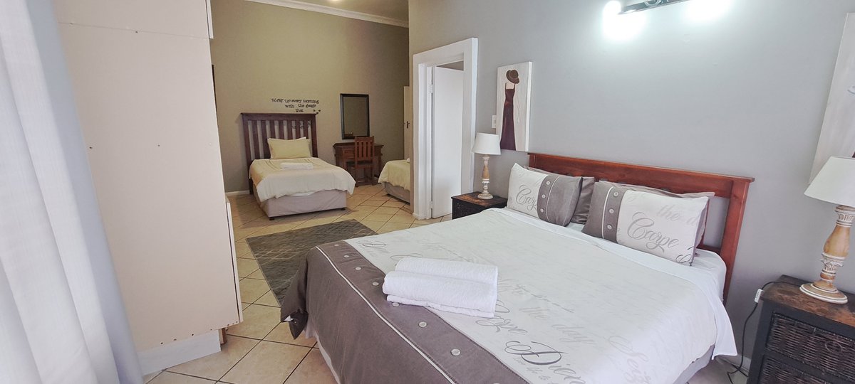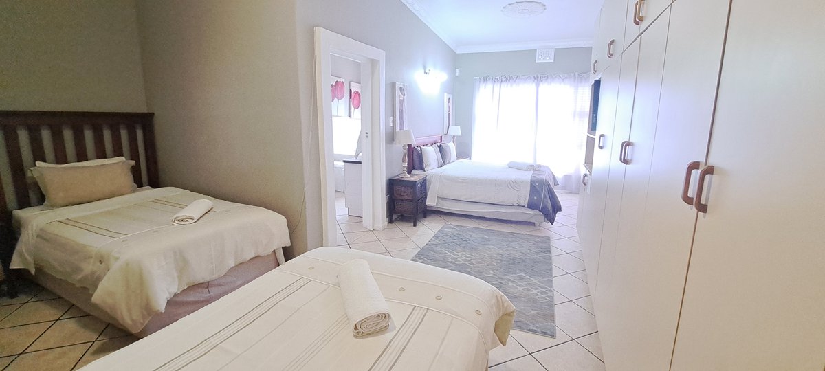 This Unit is a self-care unit. Tea/Coffee and Sugar will be supplied for the first use only. Queen size bed, two single beds and two sofa beds. One large bedroom and open plan kitchen living area. One en-suite bathroom with a shower only. One open plan kitchen-living area with braai facilities and two sofa beds (Sleeping couches). Sleeps total of 6 guests and has Satellite TV. Fully equipped with linen/towels etc.